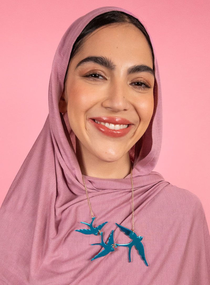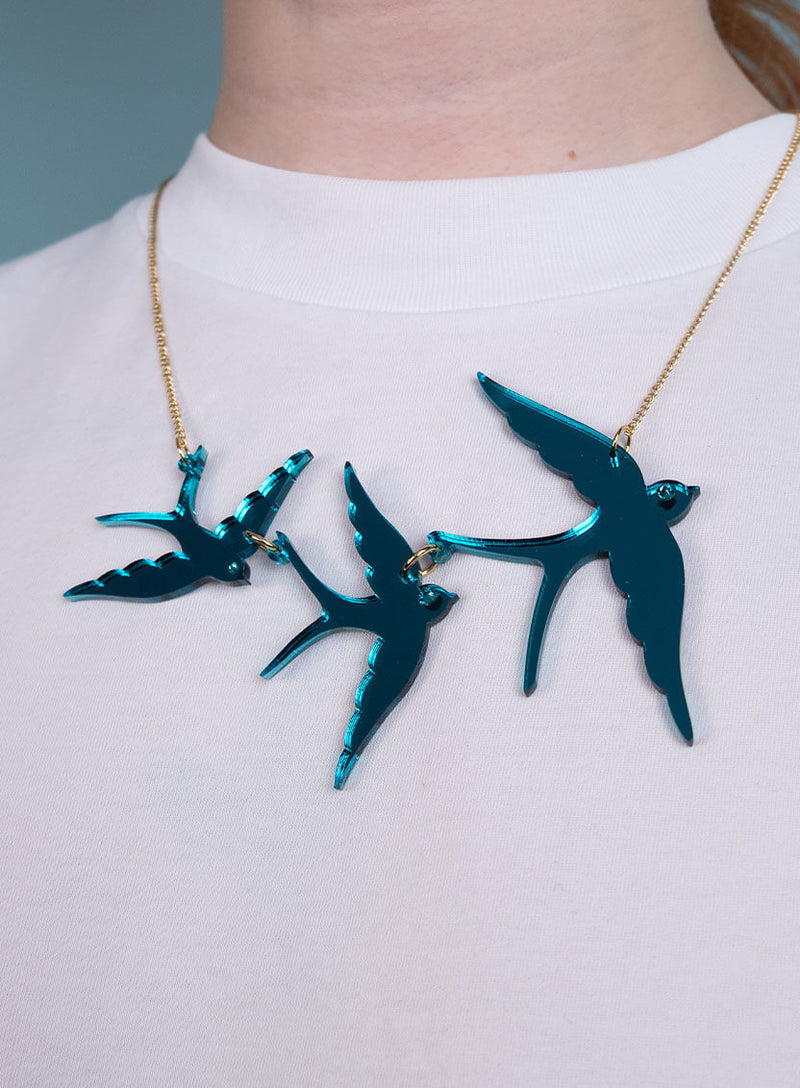 Add jewel tones to any look with our Swallow Triple Necklace. A trio of swooping silhouettes dazzle in gorgeous turquoise acrylic, each embellished with a twinkling crystal eye. Easy-to-style for occasions to every day, this bird necklace is sure to become a firm favourite.