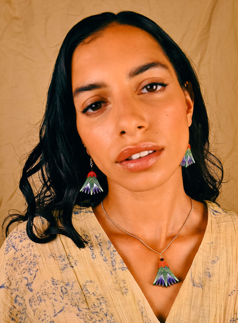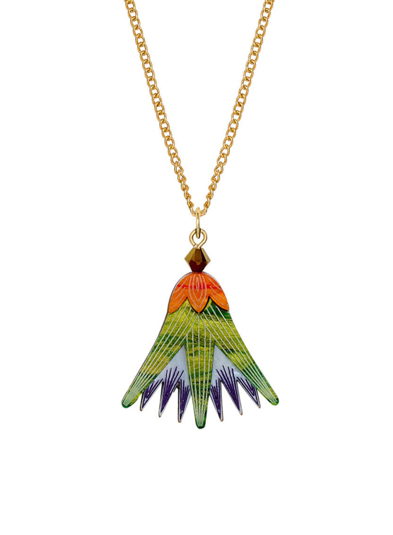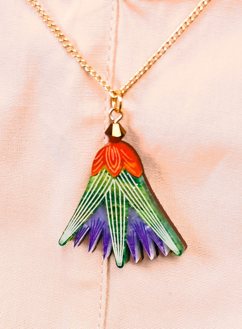 Bloom like an icon of rebirth: our Blue Lotus Flower Pendant pays homage to the sacred flower of ancient Egypt. Laser cut in shimmering layers of violet, emerald, and fiery red acrylic, each petal is etched with fine details to capture the elegance of this timeless motif.