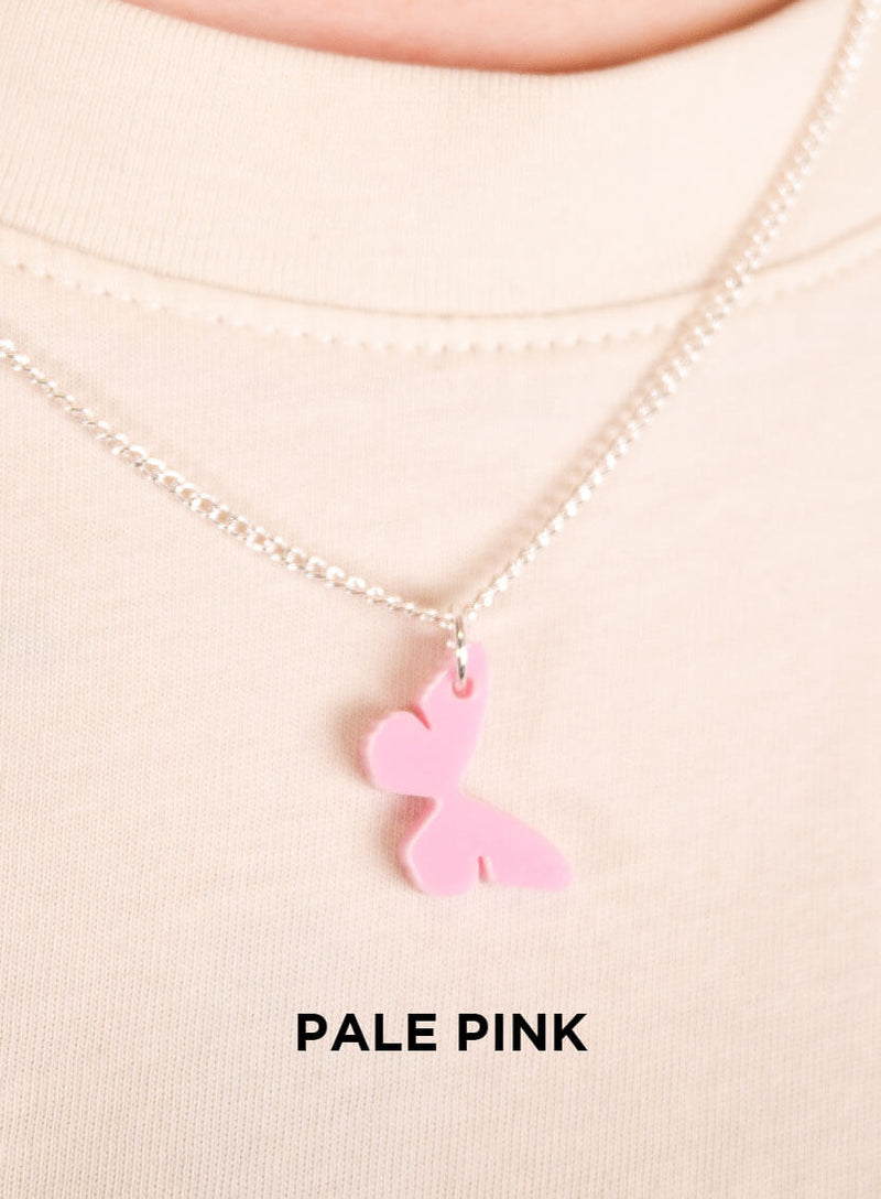 Lean into the girly aesthetic with our Butterfly Charm Necklace. We’ve laser cut the ultimate layering necklace in four summer-ready shades of acrylic. Take your pick from these tropical tones: glossy pale pink, recycled bright pink, colour-changing iridescent and dazzling teal mirror. All suspended from your choice of adjustable silver or gold-plated chain. Shop butterfly jewellery sets and pair with our matching charm earrings.