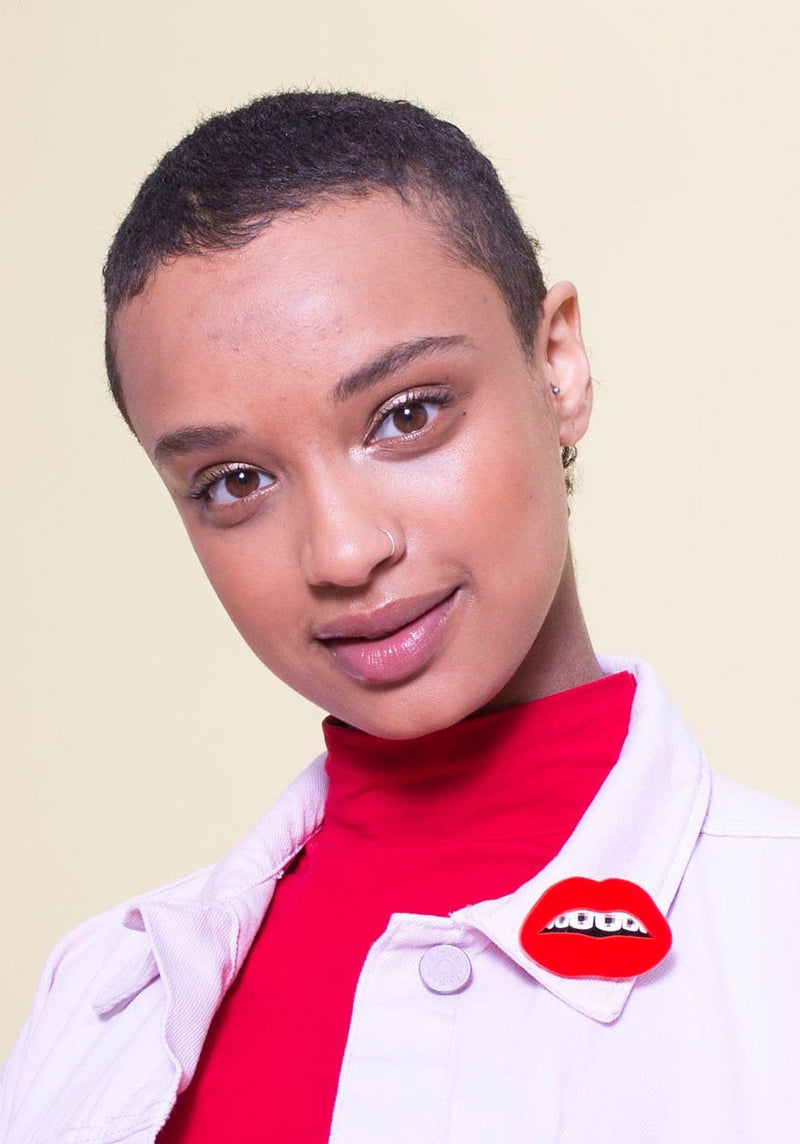Glossy red lips brooch This piece has minor defects, but it still meets our high-quality standards and is a great find! Misaligned layered acrylic Presented in an eco-friendly gift box