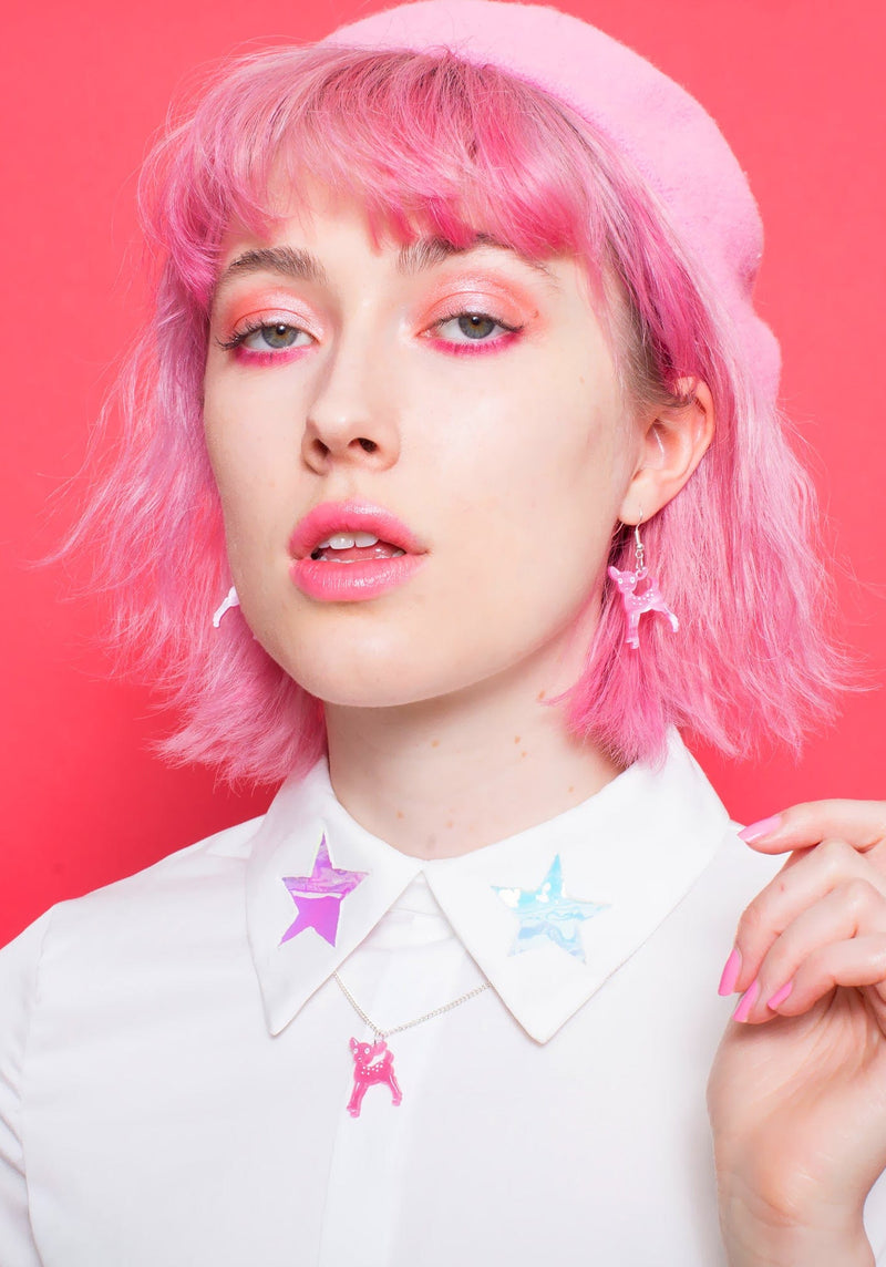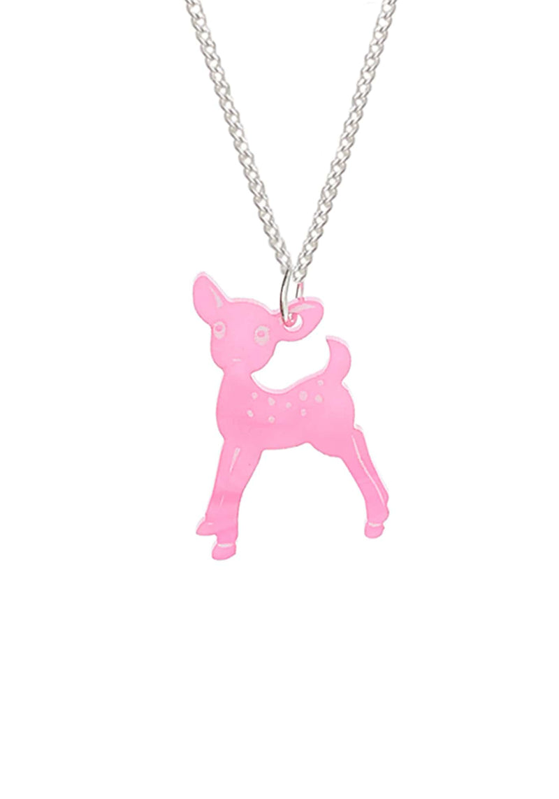 Look a-doe-rable in the Festive Fawn Pendant in Pink Pearl acrylic. Pop a little kitsch cuteness under the tree this year, with our laser cut pearlescent acrylic necklace which recreates a sweet deer and is complete with etched detailing and a sparkling silver-tone chain. Aww!