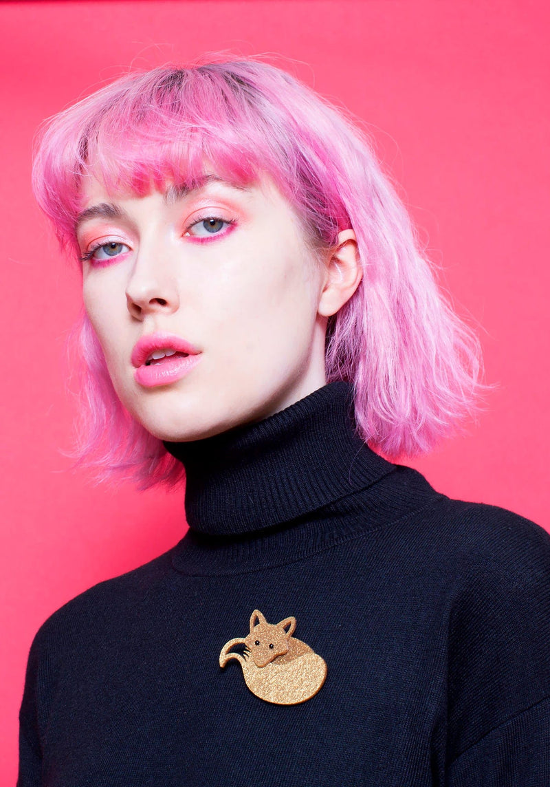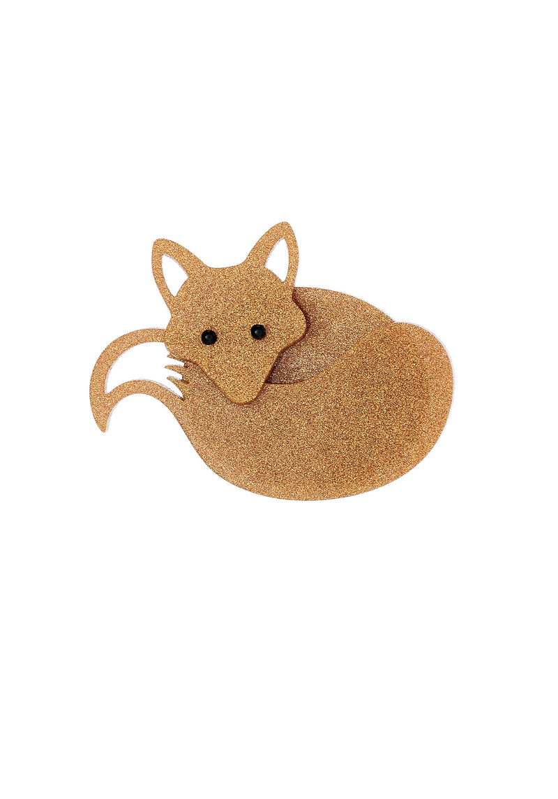 *listens to Jimi Hendrix once...* Get your hands on the glistening Fox Brooch in Gold Dust acrylic. Our classic design from 2011 has been given a spot of sparkle with micro glitter acrylic and beady black hand pinned eyes. Don't wait to see if its snuggled up under your Christmas tree: go, go, go!