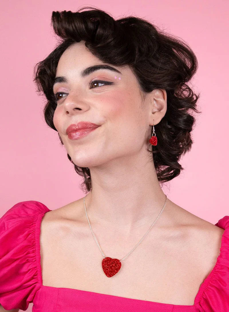 Add a pop of red with the Glitter Heart Necklace. Sparkling styling is made simple with a red glittering heart charm that pops of over pastel pinks to graphic band tees.