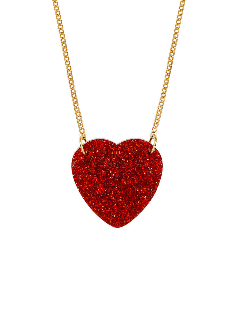Add a pop of red with the Glitter Heart Necklace. Sparkling styling is made simple with a red glittering heart charm that pops of over pastel pinks to graphic band tees.