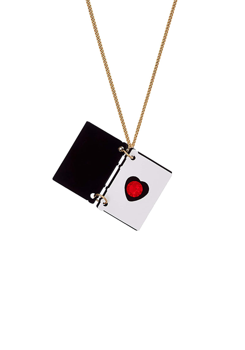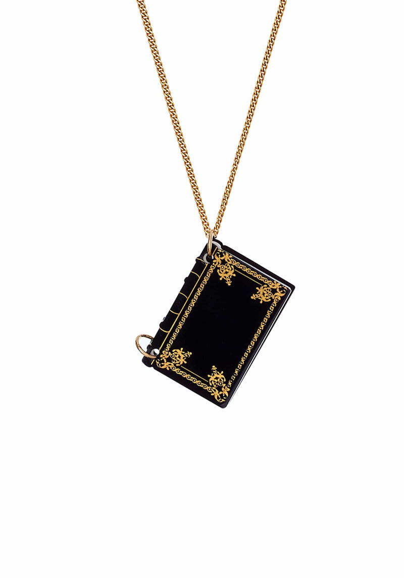 Calling all avid readers! Our Hardback Book Necklace is a guaranteed bestseller - turn delicate laser cut white acrylic pages and at its centre: a hidden crystal, sandwiched between a glossy black acrylic front and back cover. The finishing touch? Intricate etched and hand-inked gold detailing.