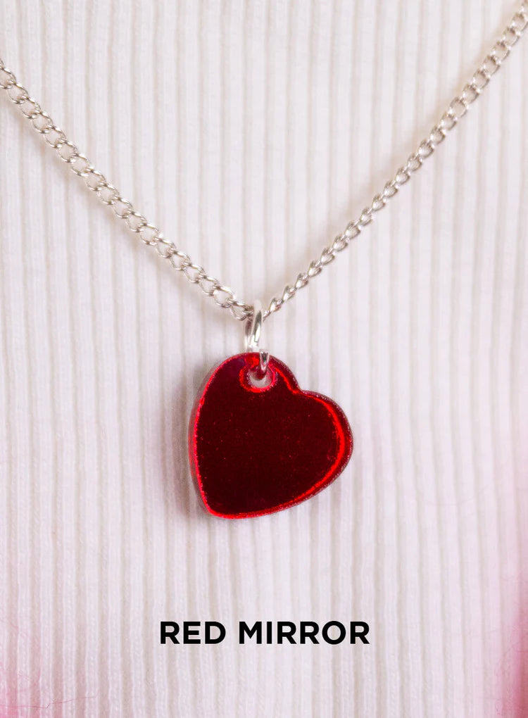 Add a little love to your everyday look with our Heart Charm Pendant. Romantic and ready to wear, we've laser cut a mini love heart necklace in five shades of glossy acrylic. Choose from these colourways: recycled red, shining ruby mirror, glow in the dark pink, baby pink pearl and red glitter. All suspended from your choice of adjustable silver-plated or gold-plated chains, shop Valentine's Day jewellery sets and gift with our coordinating charm earrings.