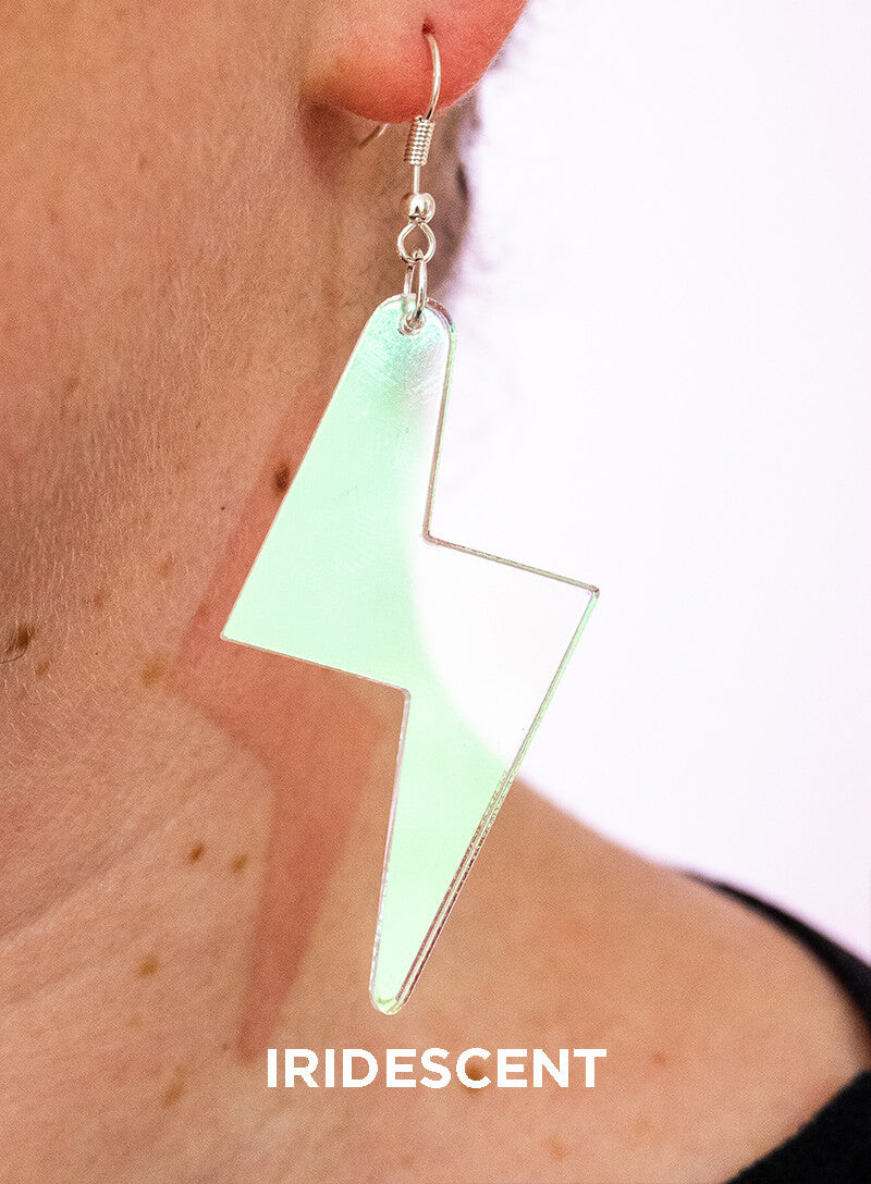Strike lucky in our Large Bolt Charm Earrings. Ready to kick off celebrations, we’ve laser cut a pair of go-to party earrings in six acrylic shades, all suspended from your choice of silver-plated or gold-plated hooks. Choose from glittering silver and gold dust, recycled yellow, iridescent, black glitter, and glow in the dark pink. The perfect partner for sequin frocks, we’ll see you on the dancefloor!