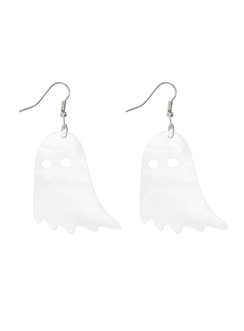 Oh boo! Make it spooky season all year round with our Large Ghost Charm Earrings. Taking you from horror film marathons to Halloween parties, we’ve laser cut a pair of statement ghost earrings in three acrylic shades, all suspended from your choice of silver-plated or gold-plated hooks. Choose from colour-changing iridescent, lustrous white pearl and glow in the dark pink. Channel Wednesday Addams and pair with white collars layered under black sweaters.