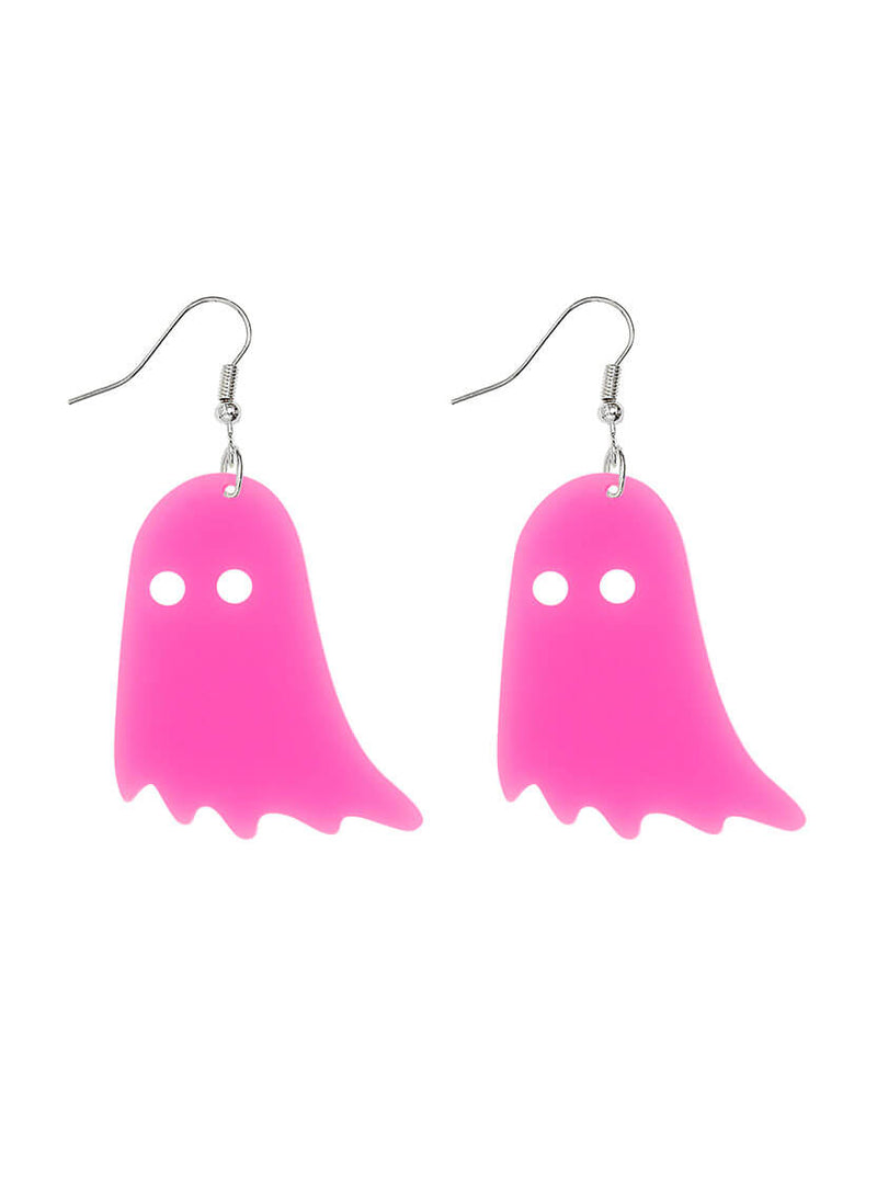 Oh boo! Make it spooky season all year round with our Large Ghost Charm Earrings. Taking you from horror film marathons to Halloween parties, we’ve laser cut a pair of statement ghost earrings in three acrylic shades, all suspended from your choice of silver-plated or gold-plated hooks. Choose from colour-changing iridescent, lustrous white pearl and glow in the dark pink. Channel Wednesday Addams and pair with white collars layered under black sweaters.