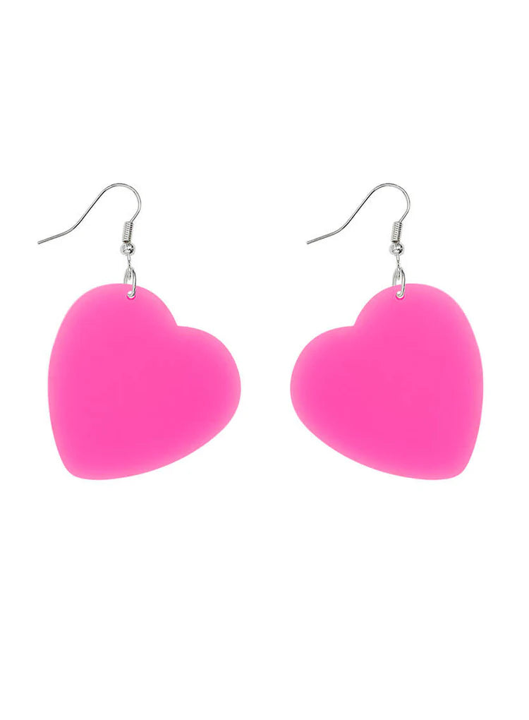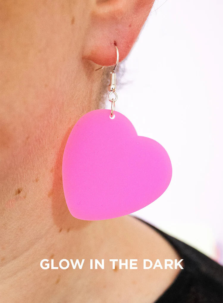 Spread the love in our Large Heart Charm Earrings. We’ve laser cut a pair of statement heart earrings in five acrylic shades, all suspended from your choice of silver-plated or gold-plated hooks. Choose from recycled red, shining ruby mirror, glow in the dark pink, baby pink pearl and red glitter. Best paired with colour-pop coordinates, these oversized charm earrings will take you from festivals to party season.