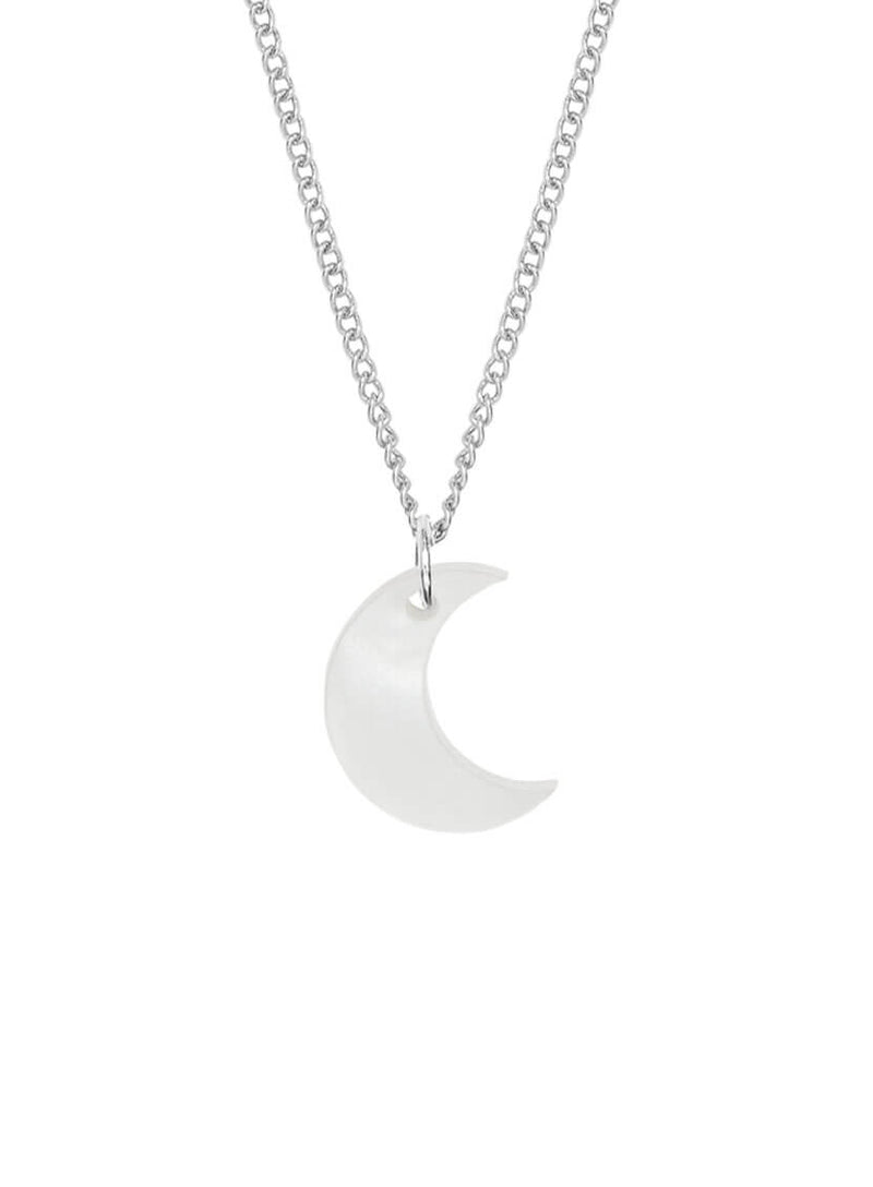 Serve lunar looks with our Moon Charm Pendant. Nodding to the night sky, we've laser cut a crescent moon layering necklace in five shades of acrylic. Choose from these celestial colourways: colour-changing iridescent, glittering silver dust, lustrous white pearl, mirror blue and glossy gold. All suspended from your choice of adjustable silver-plated or gold-plated chains, this is the perfect pint-sized present for any occasion.