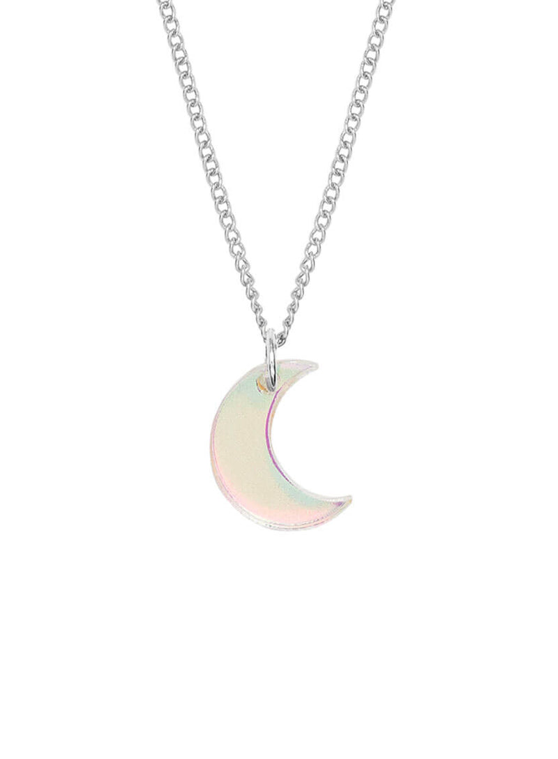 Serve lunar looks with our Moon Charm Pendant. Nodding to the night sky, we've laser cut a crescent moon layering necklace in five shades of acrylic. Choose from these celestial colourways: colour-changing iridescent, glittering silver dust, lustrous white pearl, mirror blue and glossy gold. All suspended from your choice of adjustable silver-plated or gold-plated chains, this is the perfect pint-sized present for any occasion.