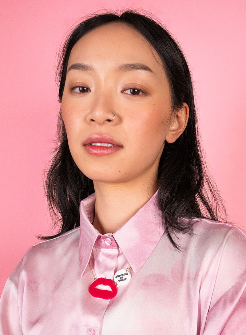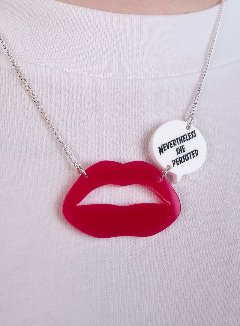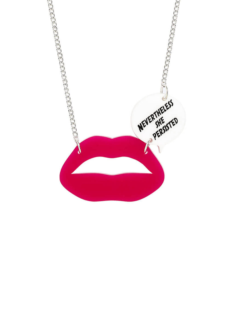 Feel unstoppable with go-to feminist jewellery, our Nevertheless Necklace - Recycled Pink. Laser cut in glossy recycled bright pink acrylic, while an etched and hand-inked speech bubble proclaims ‘Nevertheless She Persisted’. A reminder to keep on keeping on or a motivational gift, channel chants of protestors past with our vibrant lips necklace.