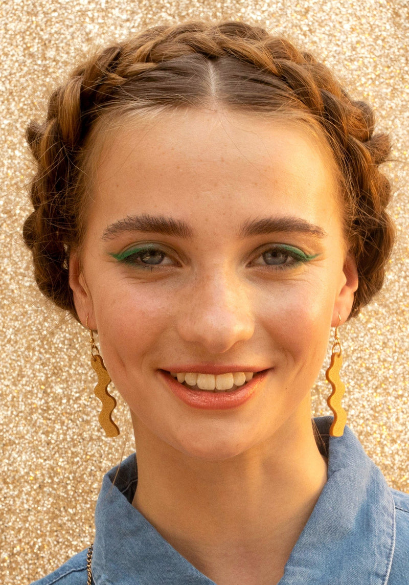 Bring the party with the Ric Rac Earrings in Gold Dust acrylic! We delved into the archive to rediscover a classic Tatty Devine design from 2009 and have brought it back as a pair of shimmering micro-glitter gold acrylic waves, laser cut to mimic pieces of classic ric rac ribbon trim. Suspended from gold-tone hypoallergenic hooks, turn heads and serve serious sparkle at your next sewing bee.
