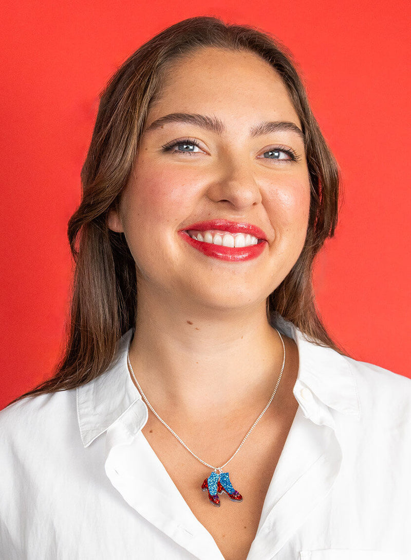 Click your heels together! We're going home in the Ruby Slippers Pendant. A nod to classic films, we've created a pair of red heels in layers of glittering laser cut acrylic. Complete with magenta bows and colour-pop blue socks: pair with your best party frock to fuzzy jumpers for a look that says “We're not in Kansas anymore!" Wrap up this piece for the musical fan in your life.