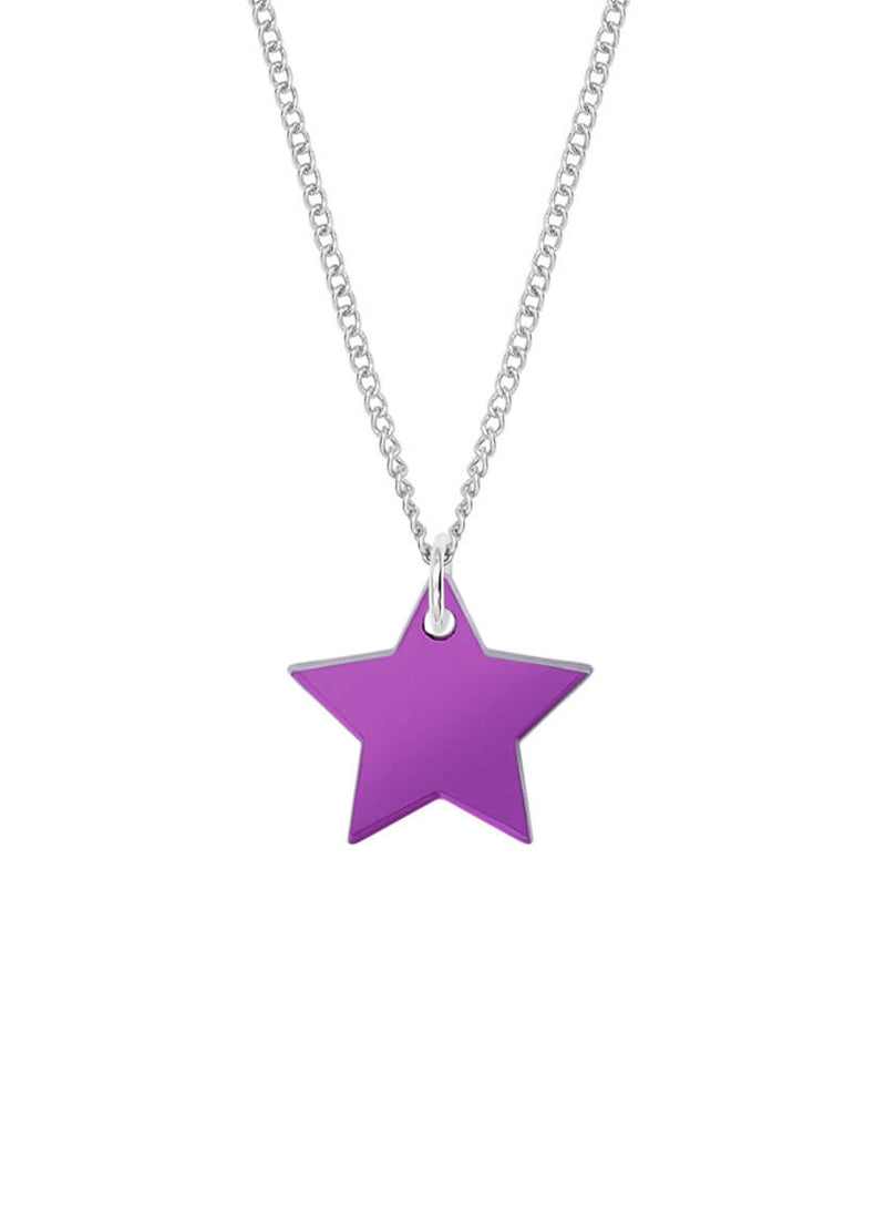 Stargazers, catch a falling Star Charm Pendant. We've laser cut the ultimate celestial necklace in seven intergalactic shades of acrylic. Take your pick from these twinkling tones: sparkling black, gold and blue, glow in the dark pink, colour changing iridescent to dazzling purple mirror. All suspended from your choice of adjustable silver-plated or gold-plated chains, curate your very own necklace stack by pairing with our Moon Charm Pendant and Ghost Charm Pendant.