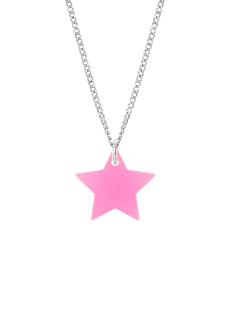 Stargazers, catch a falling Star Charm Pendant. We've laser cut the ultimate celestial necklace in seven intergalactic shades of acrylic. Take your pick from these twinkling tones: sparkling black, gold and blue, glow in the dark pink, colour changing iridescent to dazzling purple mirror. All suspended from your choice of adjustable silver-plated or gold-plated chains, curate your very own necklace stack by pairing with our Moon Charm Pendant and Ghost Charm Pendant.
